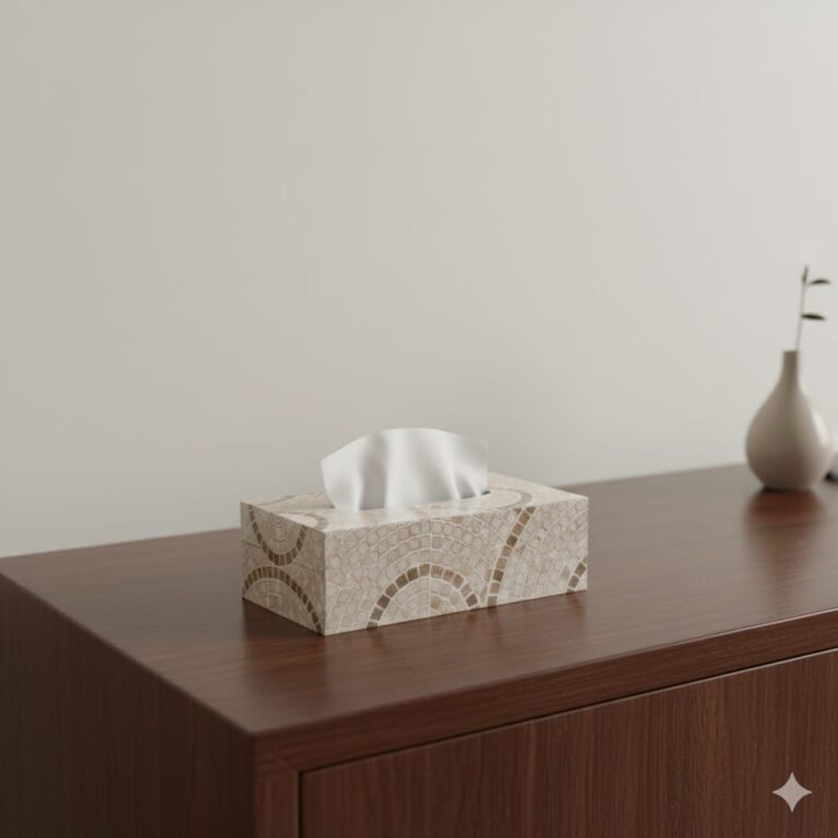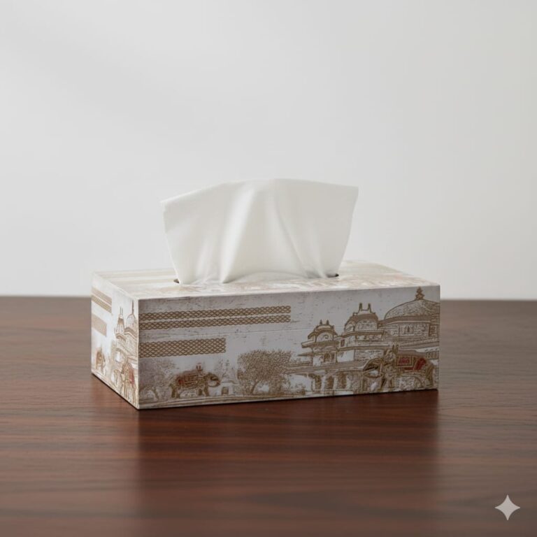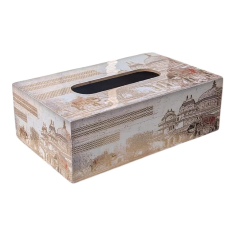 Upgrade your home décor with the Madarks Decorative Tissue Box Cover, thoughtfully crafted from high-quality MDF and finished with an elegant enamel-coated paper print. Designed to combine functionality with aesthetics, this tissue box holder enhances the look of your living room, bedroom, office, or dining area while keeping tissues conveniently accessible.